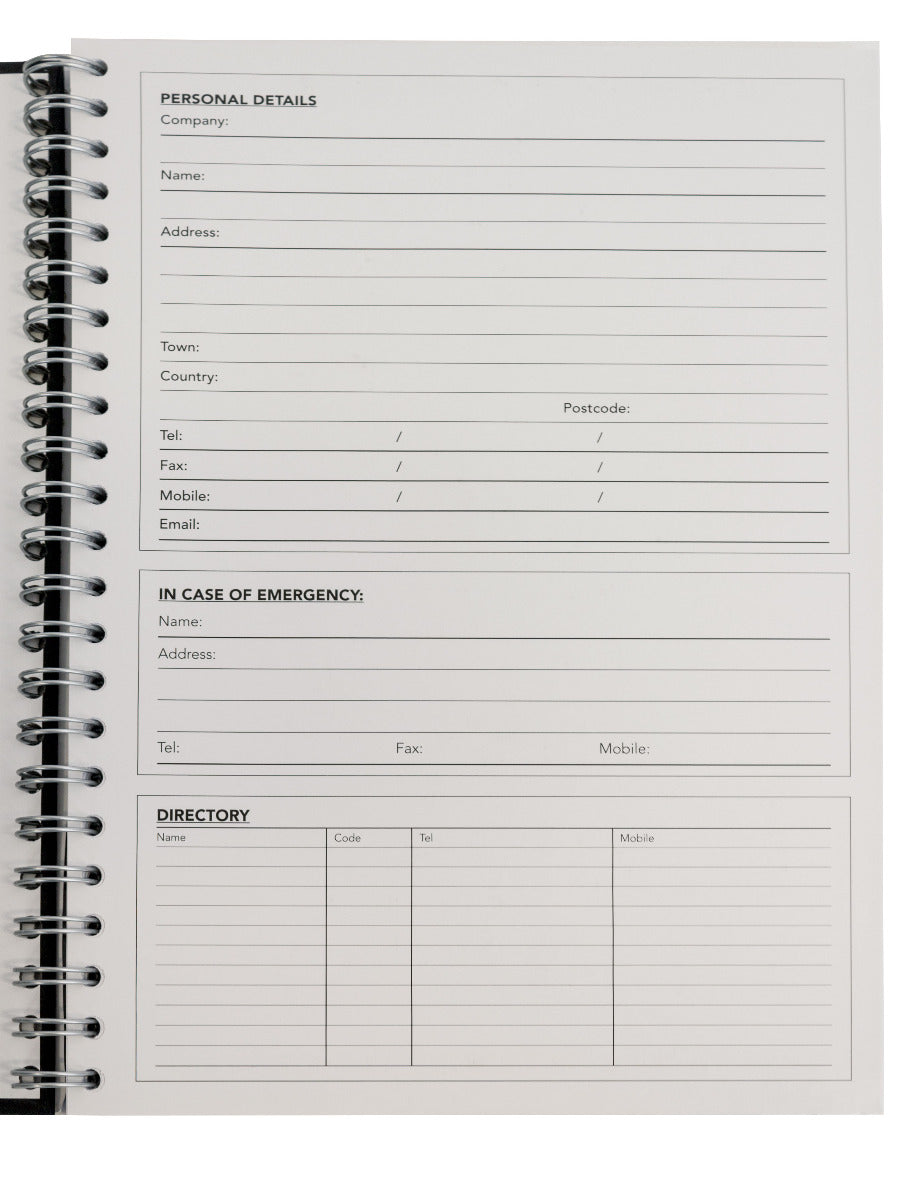 Each notebook is A5 in size, measuring 148mm x 210 mm and features a durable hard-backed lined cover. Inside the notepad you will find a helpful personal details page and world map. Each notebook has 160 pages of high-quality FSC © certified paper that is 90 GSM in weight. The notebook pages are ruled with 8mm lines and page perforation. Each notebook features twin-wire binding allowing the notebook to lie flat for easy note-taking.