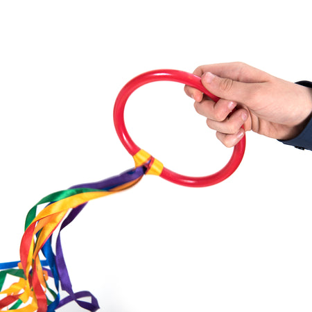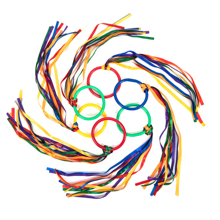 A set of 6 rings with coloured ribbons attached, perfect for adding visual impact to any dance routine.