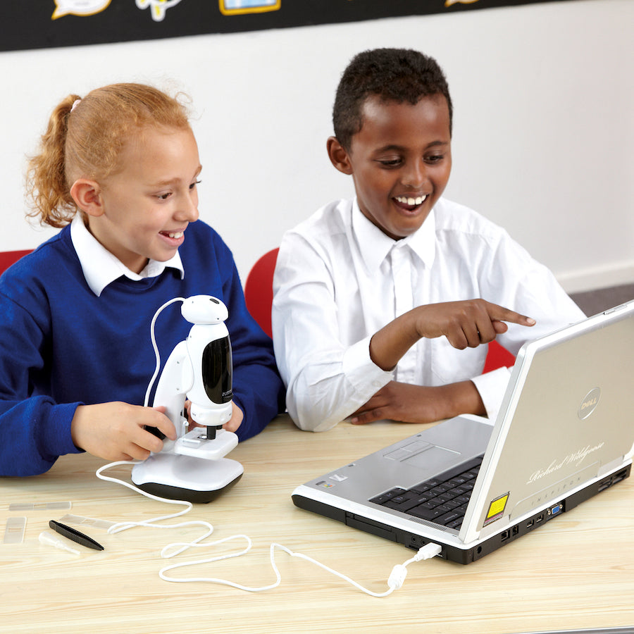 The enclosed software enables children to view and manipulate imagery live on their computer/whiteboard. It features an easy twist focus and 2 bright LEDS so children can light and view many different objects or materials. Colours may vary.
