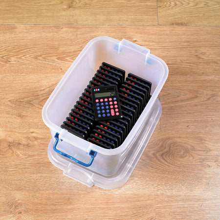 With all the features required for KS1 upwards including 8 digit LCD display, 3 key memory, 4 functions. Solar and AA battery powered, with batteries included. All provided in a sturdy carry and storage case with lid.