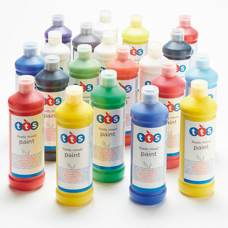 Colours available; Black, brilliant blue, brilliant green, brilliant red, brilliant yellow, burnt sienna, burnt umber, colbalt blue, crimson, lemon, orange, prussian blue, purple, viridian, white and yellow orche. Please note you may receive high quality branded ready mix paint from either TTS our sister company Consortium.